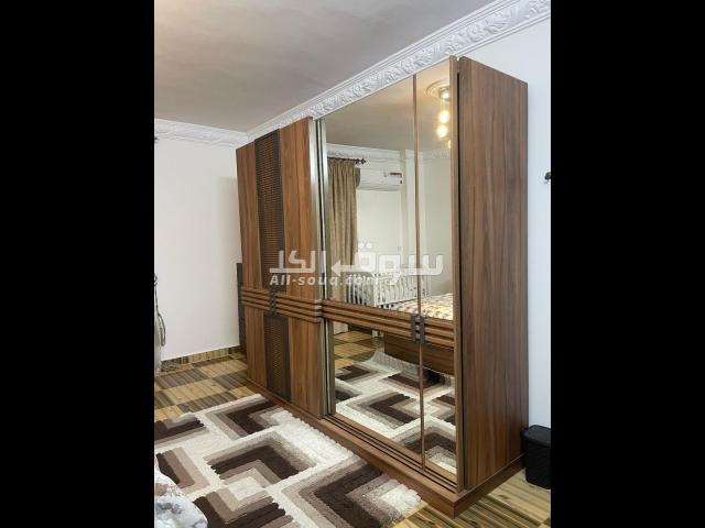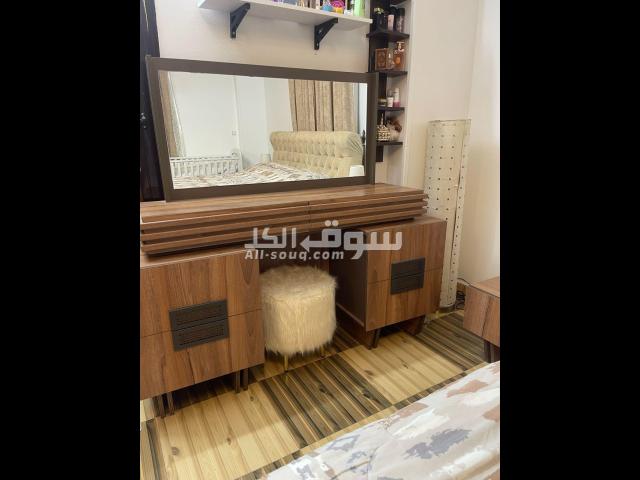 الغرفة مكونة من سرير 160 سم و خزانه 240 سم جرار وتسريحة 150 سم بالمرايا و 2 كمود استخدام اقل من سنة ومعها فرشة فوق الممتاز تصلح لعرسان للتواصل واتساب 0930453613