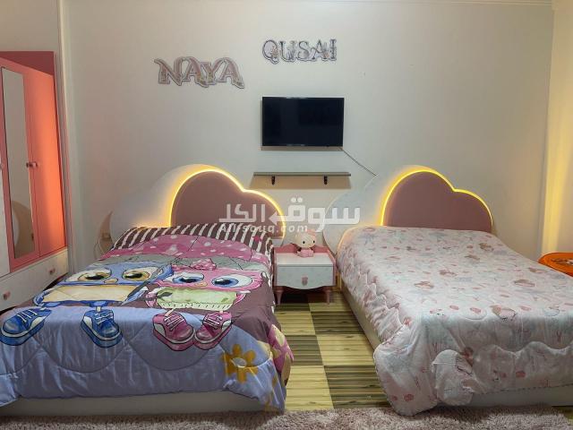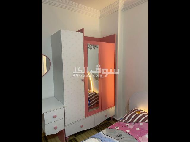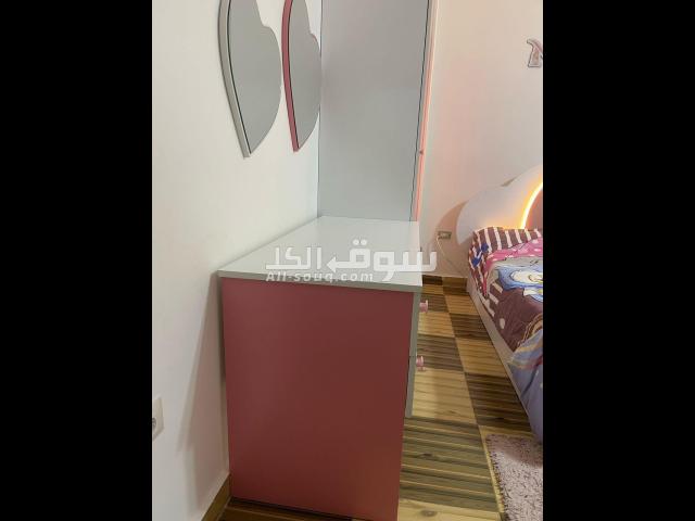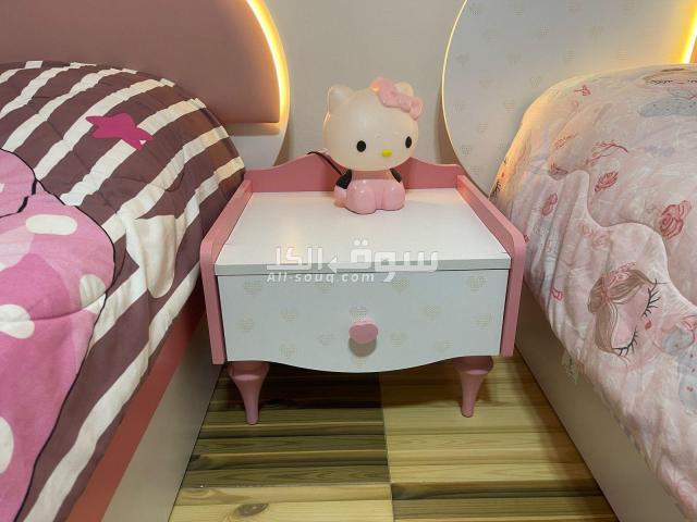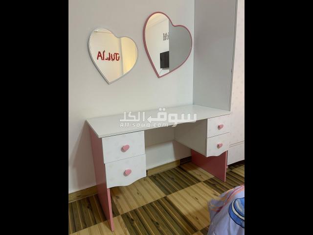 غرفه نوم اطفال 2 سرير و 2 فرشات و خزانه ومكتب وكموند و2مرايه شكل قلب الوان ثابتة ونظيفة معها الفرشات عدد 2