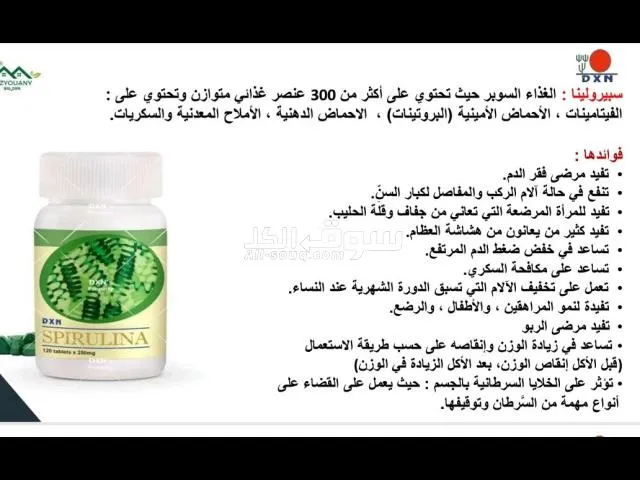 مستحضر السبيرولينا يحتوي على اكثر من300عنصر غذائي مكون من فيتامينات واحماض امينية واحماض دهنية واملاح معدنيةوالسكريات