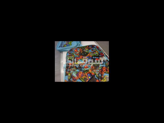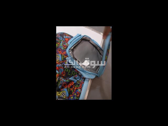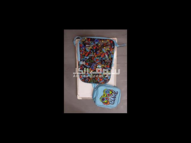 شنتاية ظهر مدرسية صبياني باللون الازرق الفاتح مع بوكس للطعام يحفظ الحرارة لققطة و بس ب مية و ستين الف
