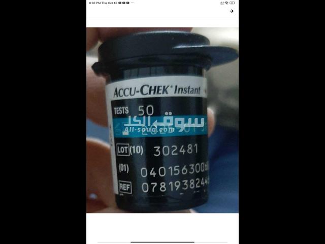 علبة شرائح تحليل السكر ماركة اكواشيك انستانتaquacheck instant, تحتوي العلبة على 50 شريخة، تاريخ حديث
